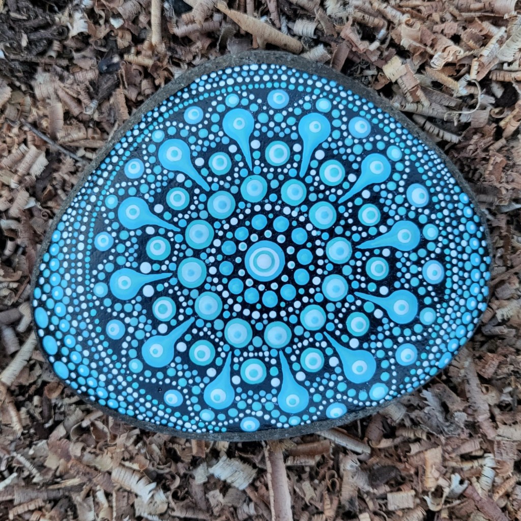 An excellent choice for modern art lovers. These Pieces are done on canvas or a hard surface like wood, blocks and even rocks. I start this painting with a color-wash background. This can be plain or an abstract color wash with multiple colors. For the mandala paintings I enjoy an abstract color wash and then doing the mandala in white. The white gives the piece dramatic effect.